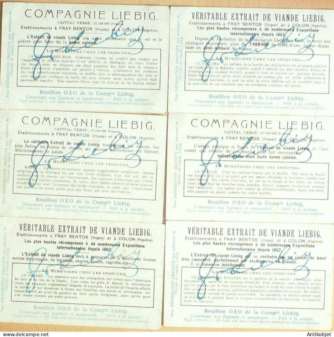 6 Vignettes publicitaires dite chromo des potages Liebig au format 107 x 70 periode de 1893 a 1943 Serie complete