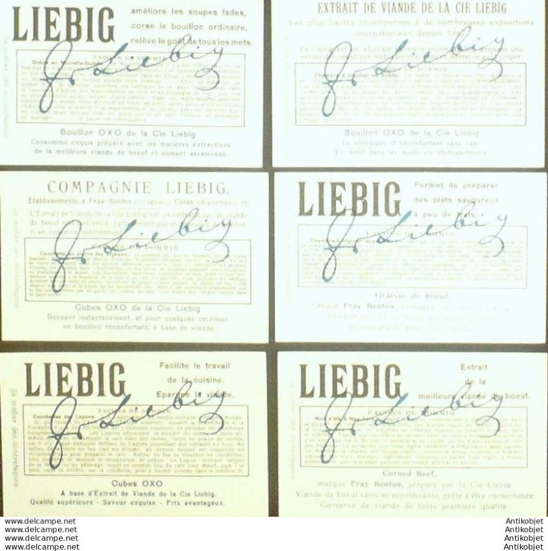 6 Vignettes publicitaires dite chromo des potages Liebig au format 107 x 70 periode de 1893 a 1943 Serie complete