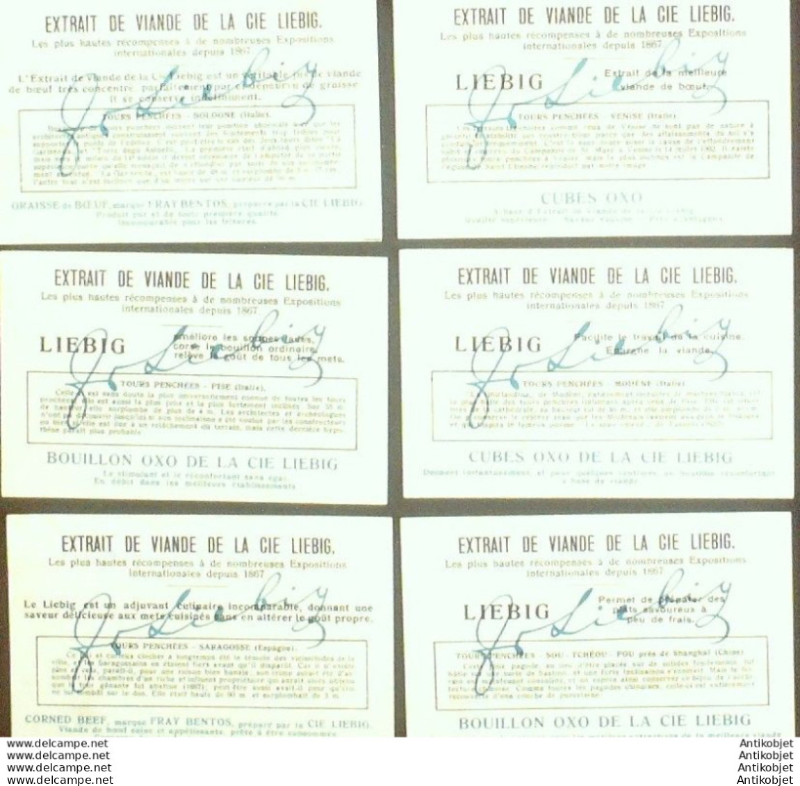 6 Vignettes publicitaires dite chromo des potages Liebig au format 107 x 70 periode de 1893 a 1943 Serie complete
