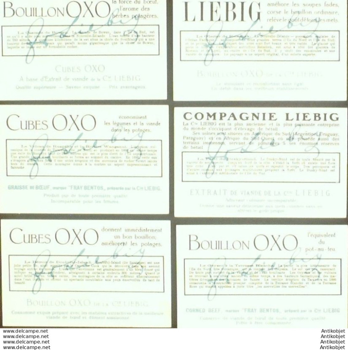 6 Vignettes publicitaires dite chromo des potages Liebig au format 107 x 70 periode de 1893 a 1943 Serie complete