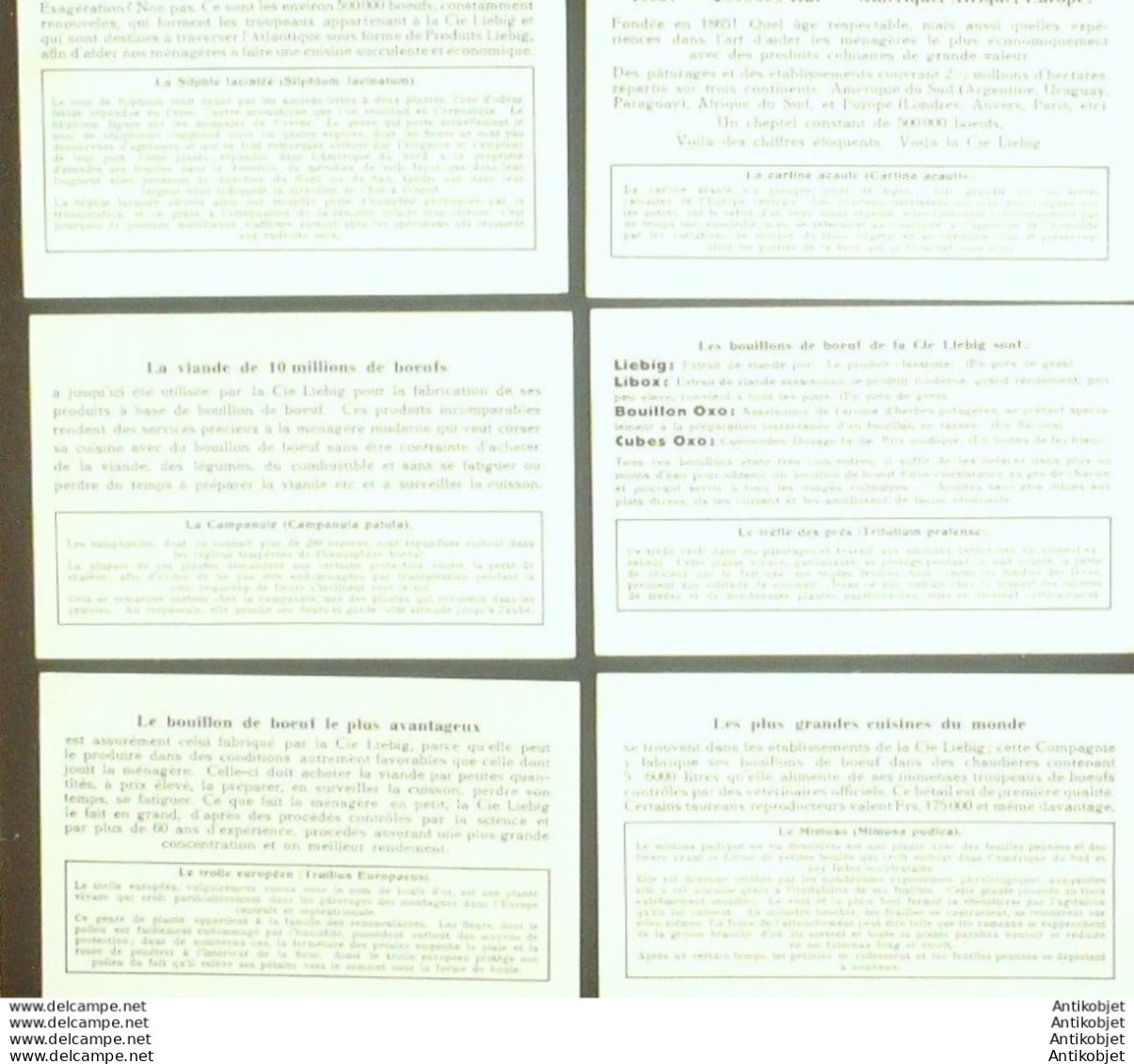 6 Vignettes publicitaires dite chromo des potages Liebig au format 107 x 70 periode de 1893 a 1943 Serie complete