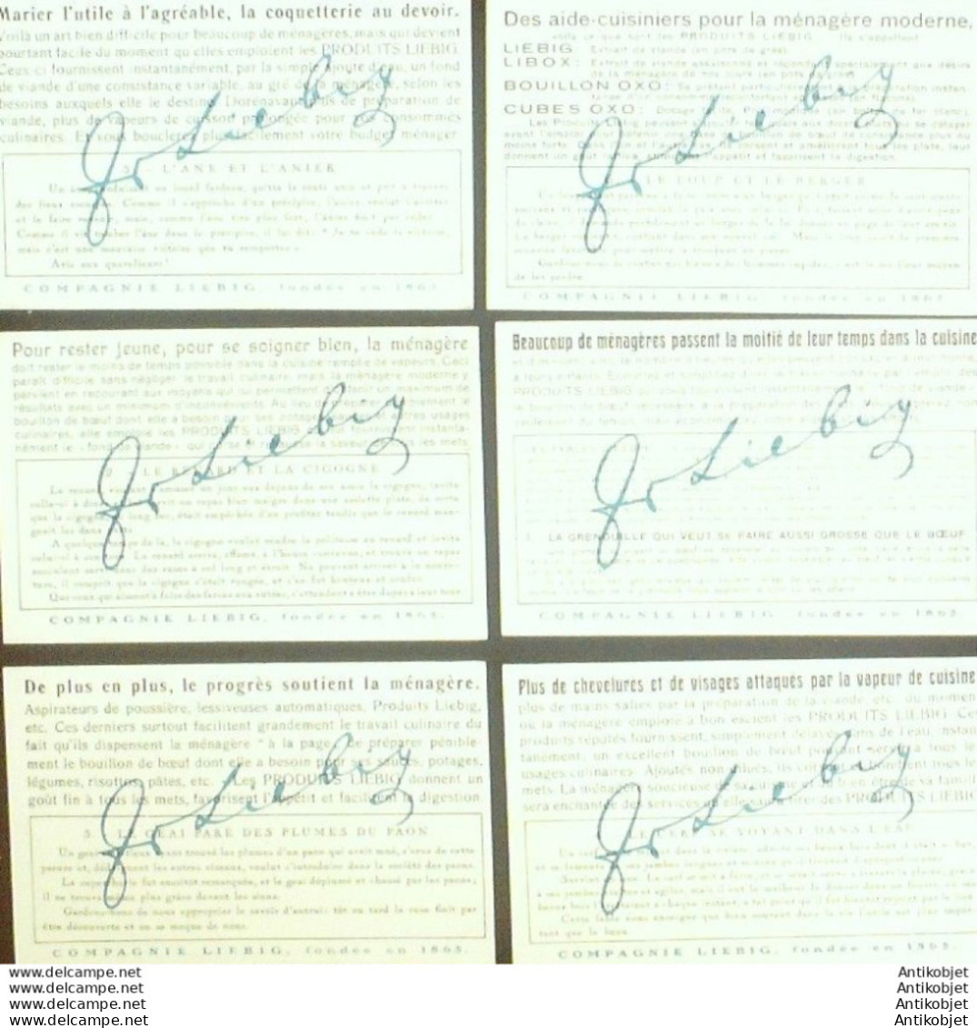 6 Vignettes publicitaires dite chromo des potages Liebig au format 107 x 70 periode de 1893 a 1943 Serie complete