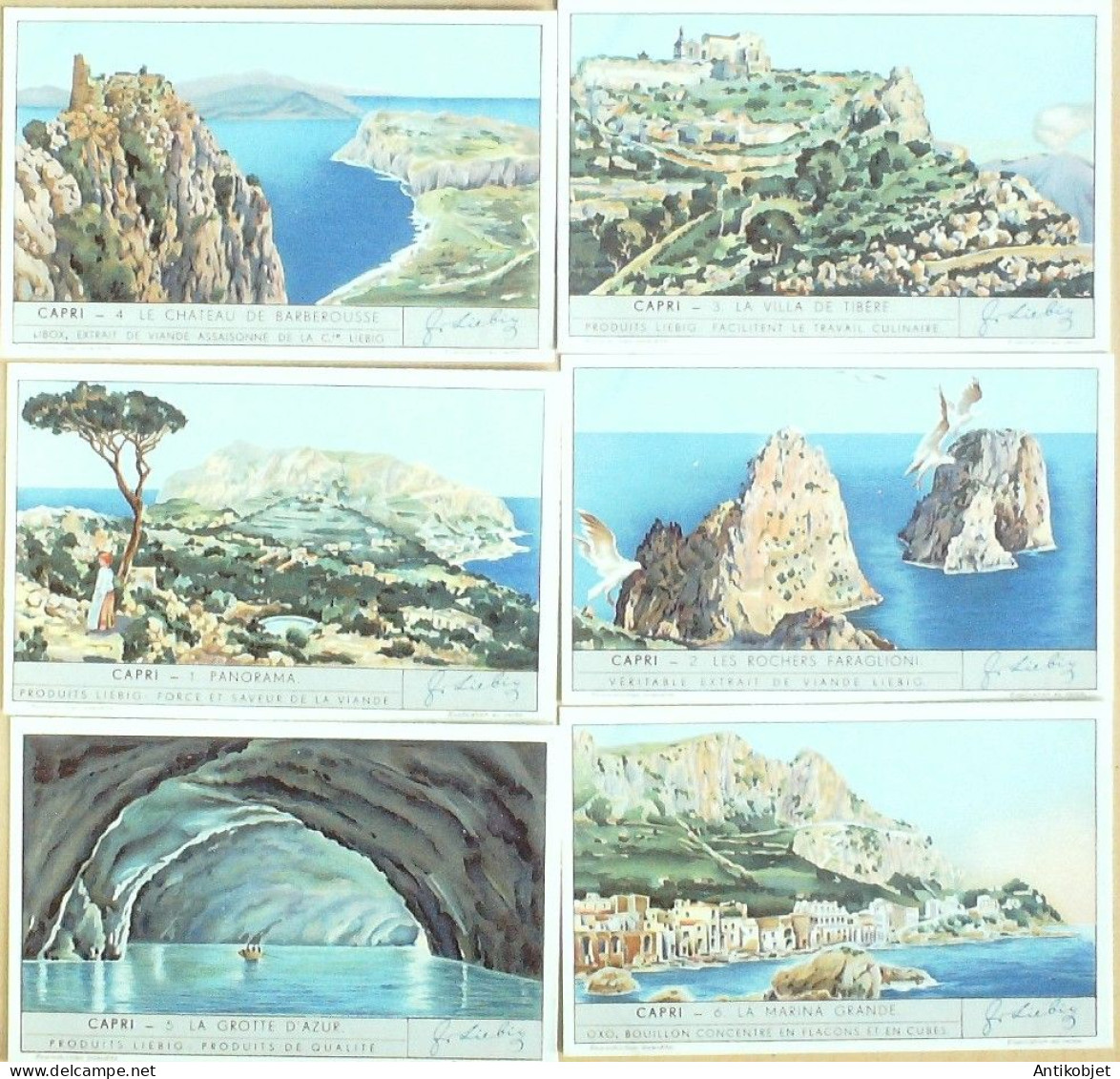 6 Vignettes publicitaires dite chromo des potages Liebig au format 107 x 70 periode de 1893 a 1943 Serie complete