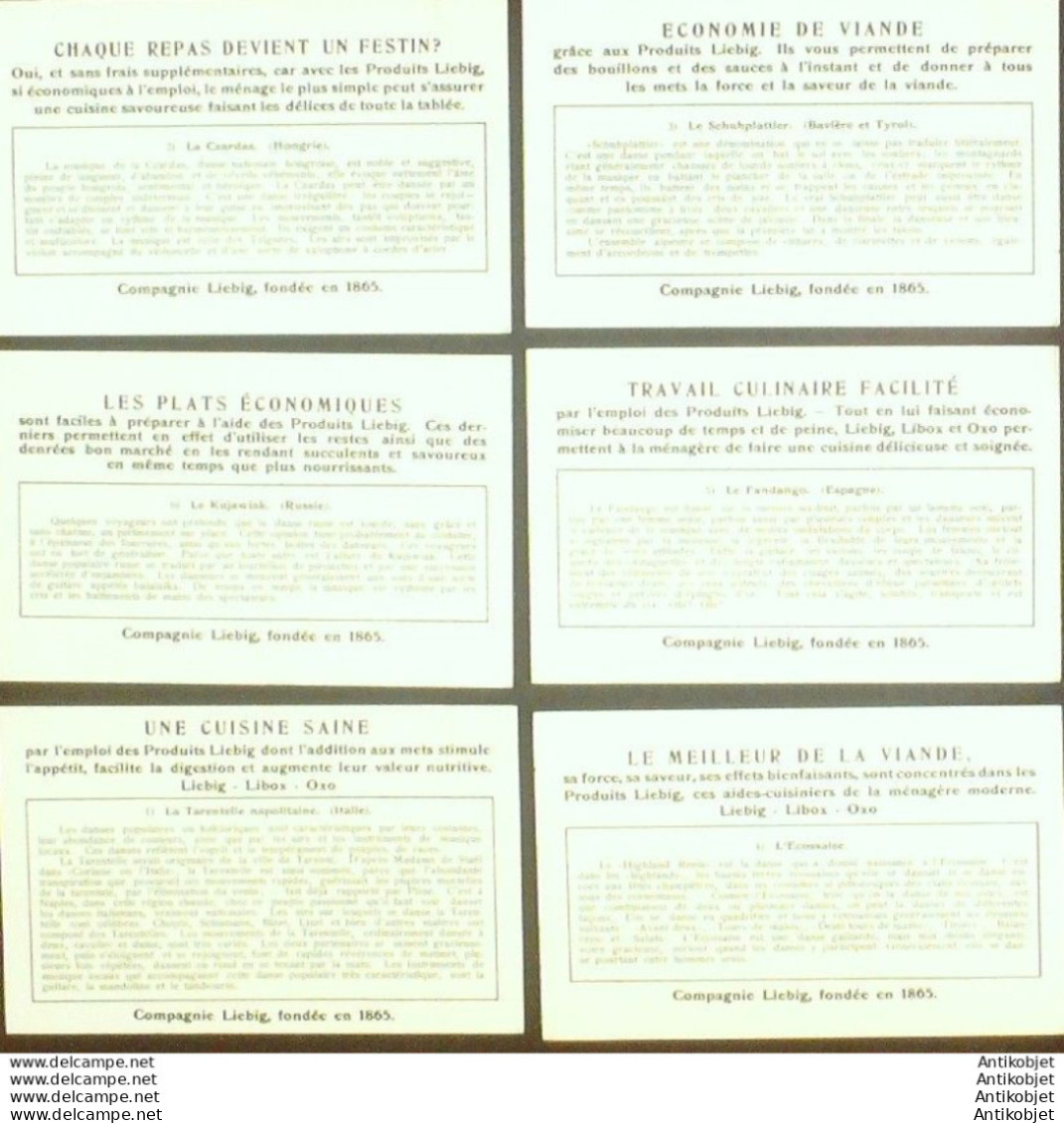 6 Vignettes publicitaires dite chromo des potages Liebig au format 107 x 70 periode de 1893 a 1943 Serie complete