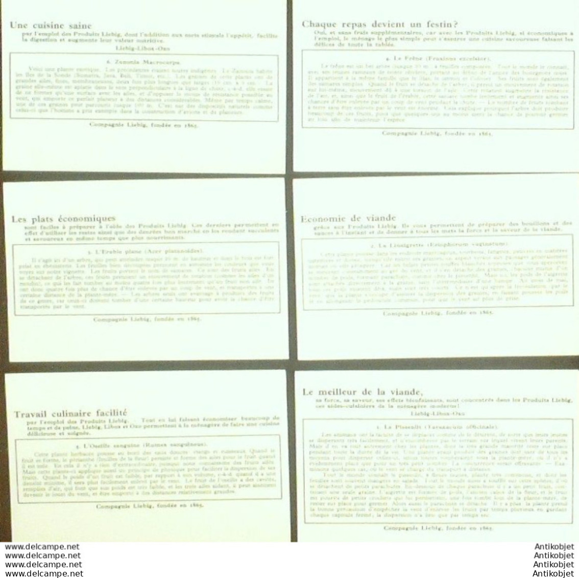 6 Vignettes publicitaires dite chromo des potages Liebig au format 107 x 70 periode de 1893 a 1943 Serie complete
