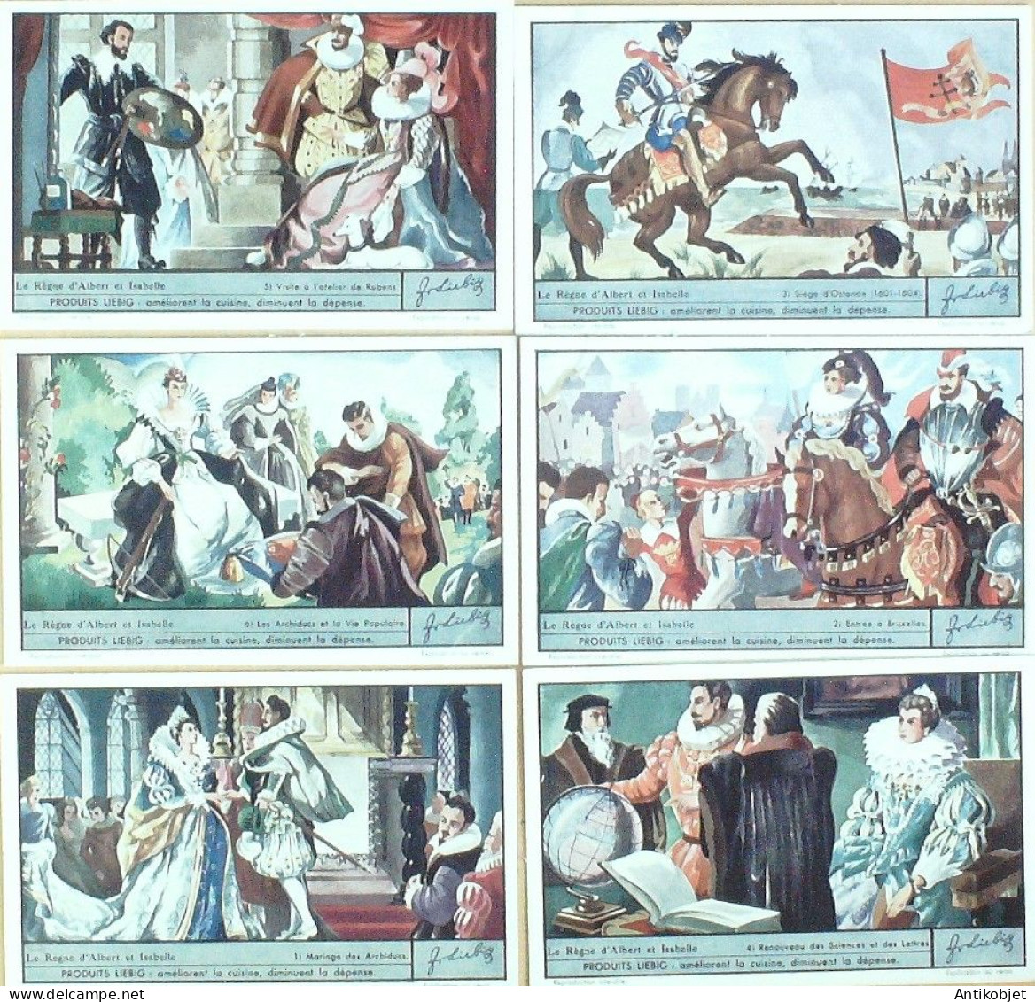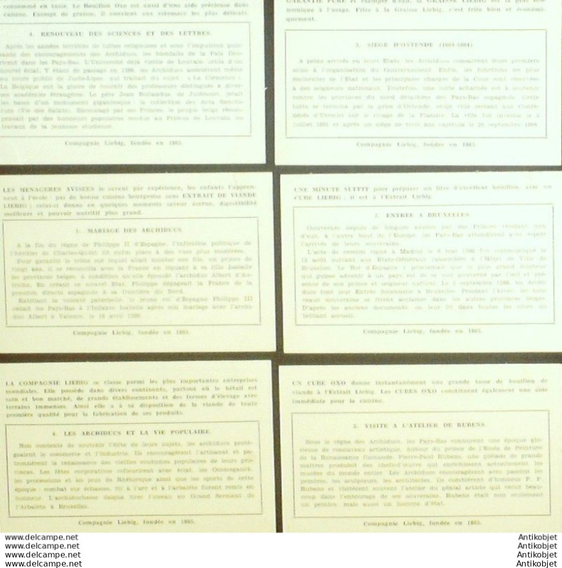 6 Vignettes publicitaires dite chromo des potages Liebig au format 107 x 70 periode de 1893 a 1943 Serie complete