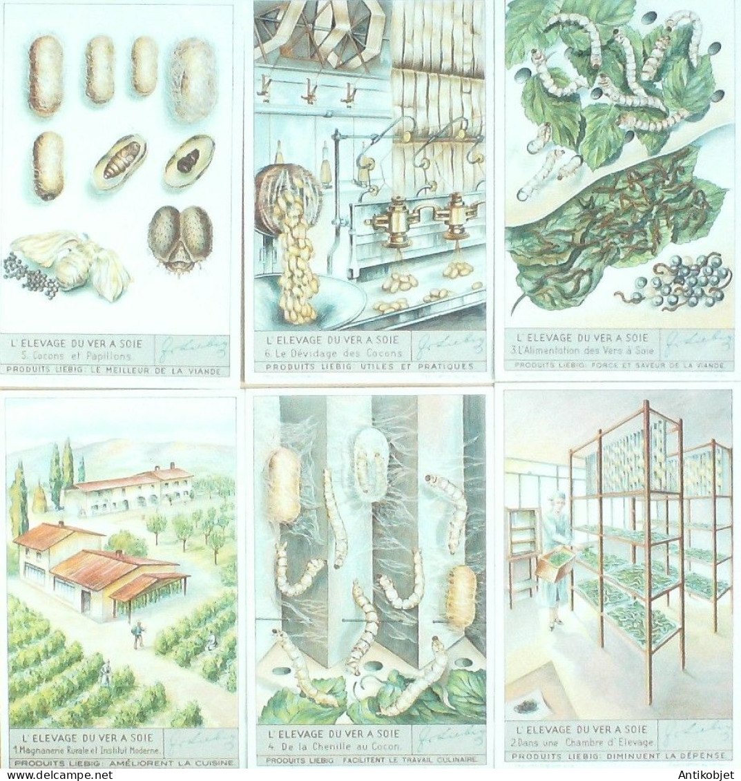Chromo Liebig Sang 1370 L"elevage du ver de soie (1938)