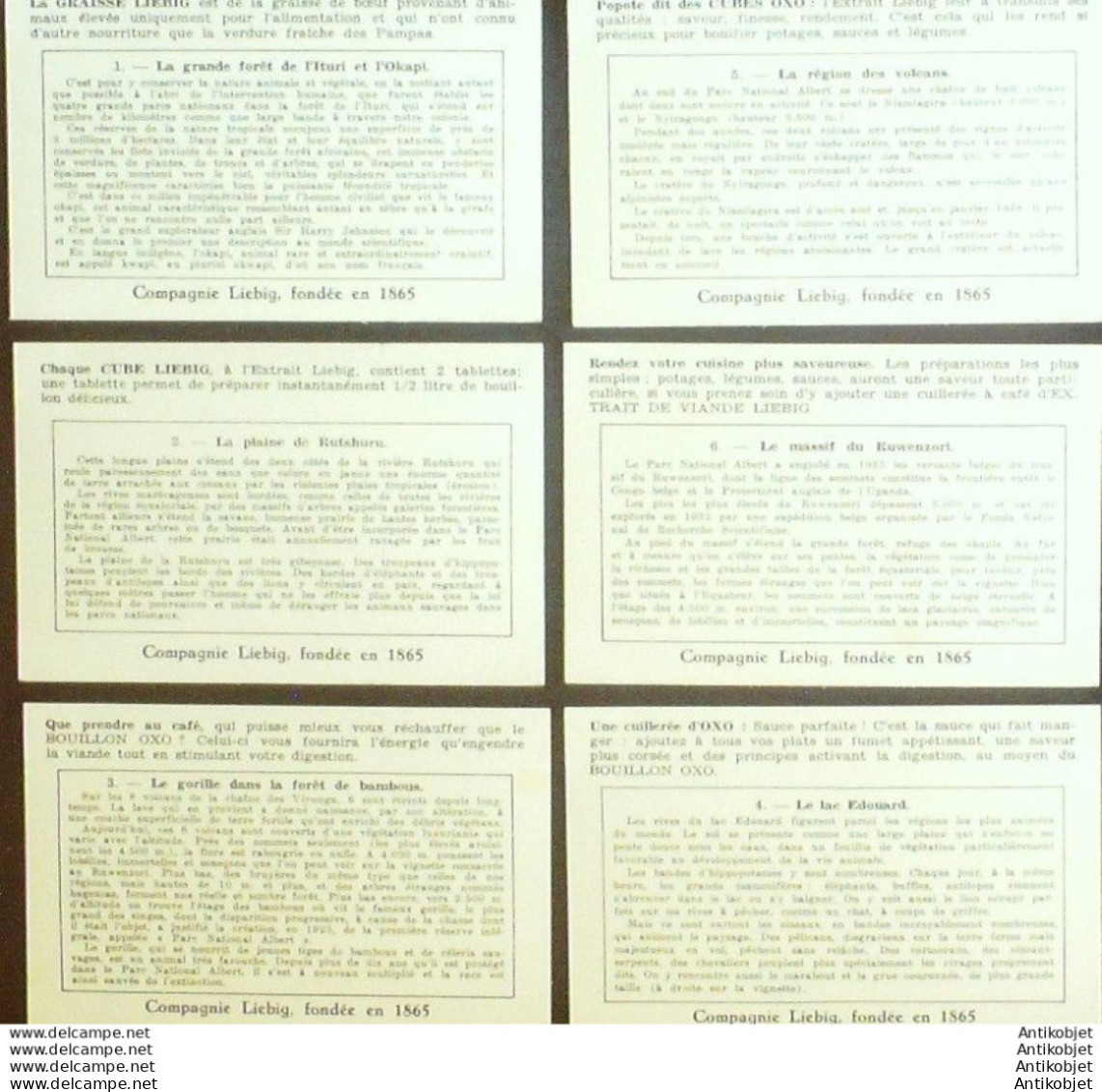 6 Vignettes publicitaires dite chromo des potages Liebig au format 107 x 70 periode de 1893 a 1943 Serie complete