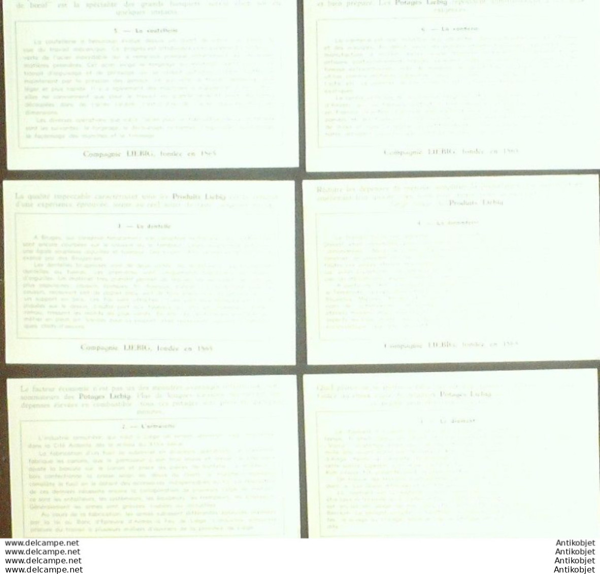 6 Vignettes publicitaires dite chromo des potages Liebig au format 107 x 70 periode de 1893 a 1943 Serie complete