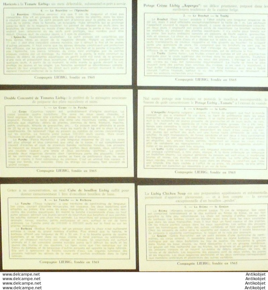 6 Vignettes publicitaires dite chromo des potages Liebig au format 107 x 70 periode de 1893 a 1943 Serie complete