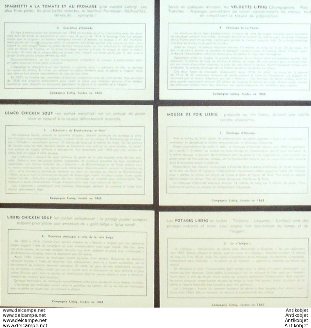 6 Vignettes publicitaires dite chromo des potages Liebig au format 107 x 70 periode de 1893 a 1943 Serie complete