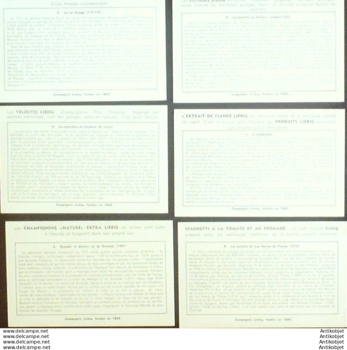 6 Vignettes publicitaires dite chromo des potages Liebig au format 107 x 70 periode de 1893 a 1943 Serie complete