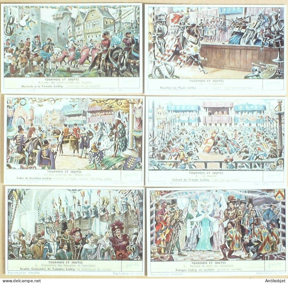 6 Vignettes publicitaires dite chromo des potages Liebig au format 107 x 70 periode de 1893 a 1943 Serie complete