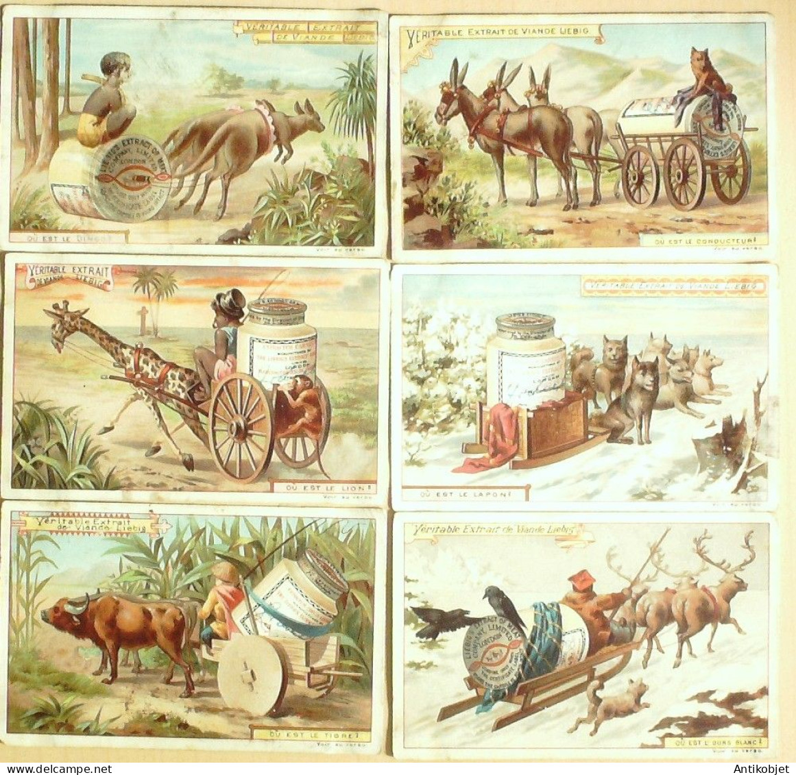 6 Vignettes publicitaires dite chromo des potages Liebig au format 107 x 70 periode de 1893 a 1943 Serie complete