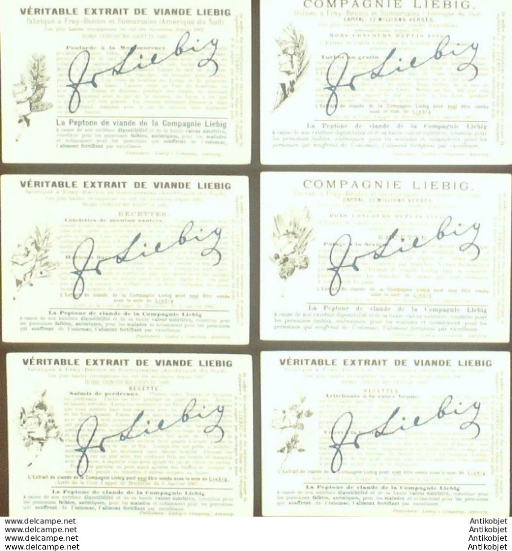 6 Vignettes publicitaires dite chromo des potages Liebig au format 107 x 70 periode de 1893 a 1943 Serie complete