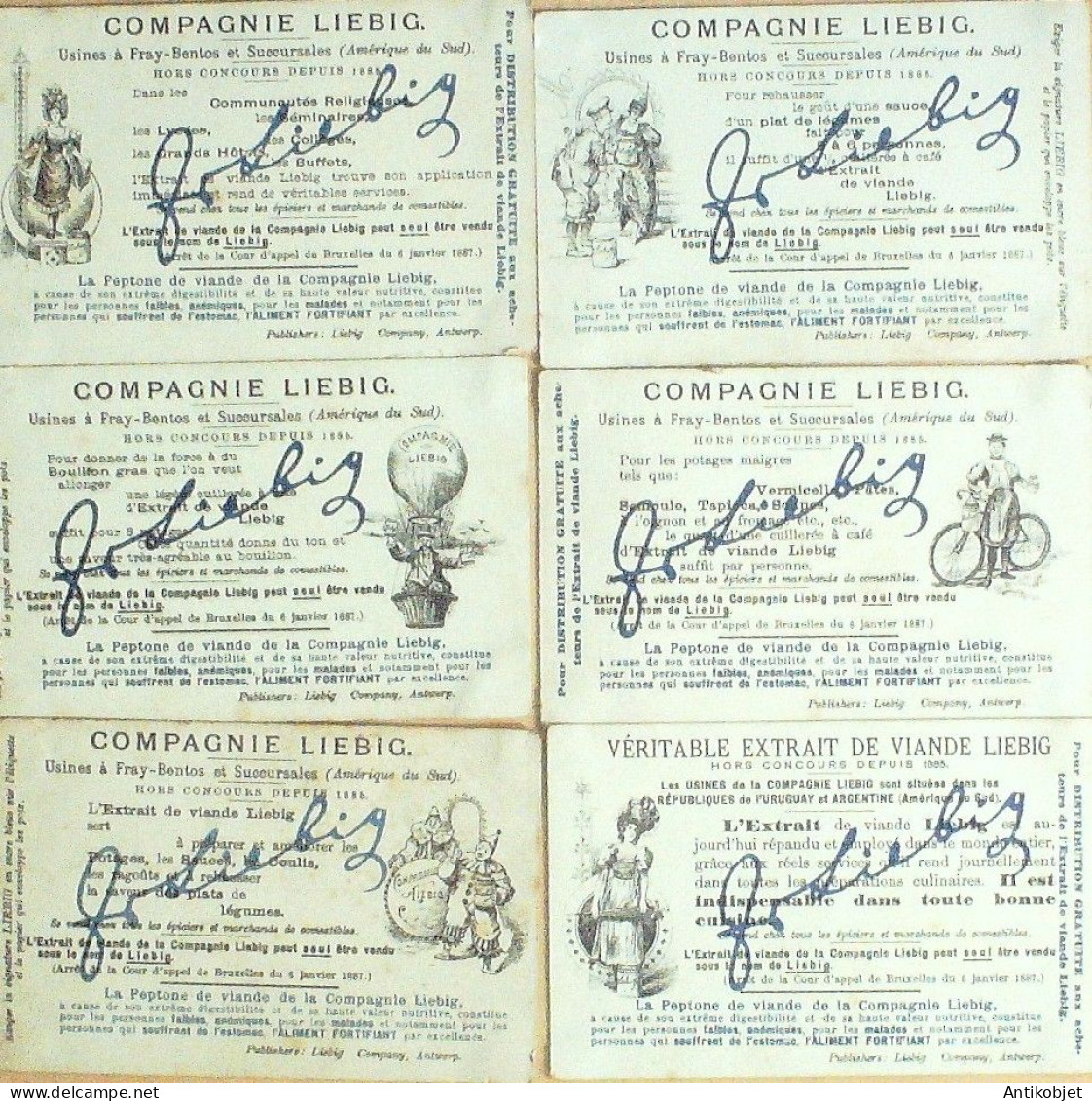 6 Vignettes publicitaires dite chromo des potages Liebig au format 107 x 70 periode de 1893 a 1943 Serie complete