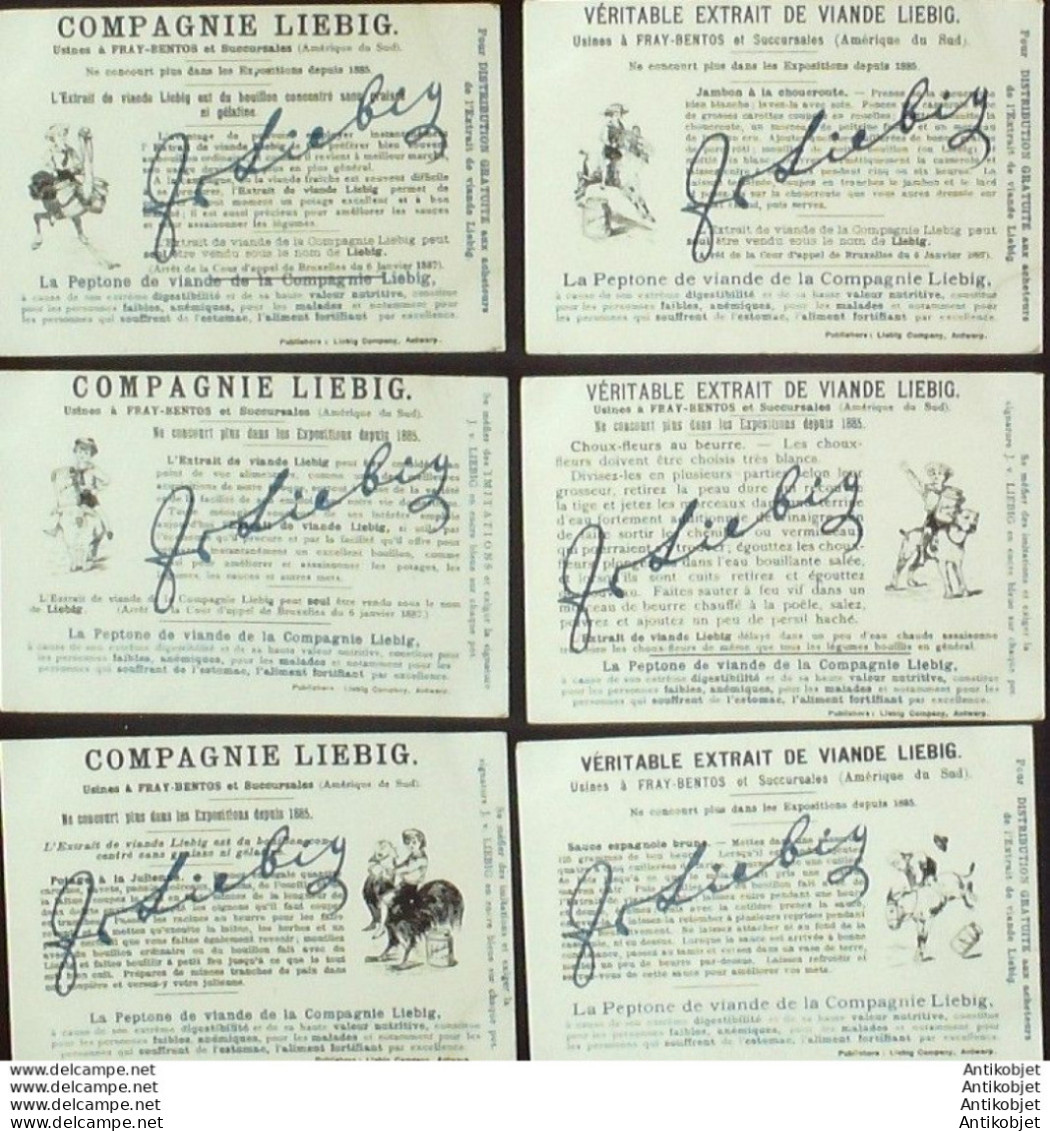 6 Vignettes publicitaires dite chromo des potages Liebig au format 107 x 70 periode de 1893 a 1943 Serie complete