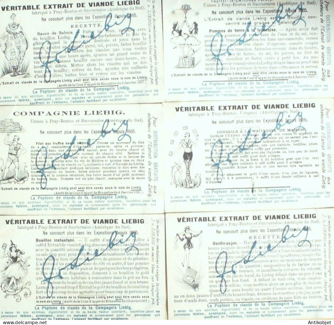 6 Vignettes publicitaires dite chromo des potages Liebig au format 107 x 70 periode de 1893 a 1943 Serie complete