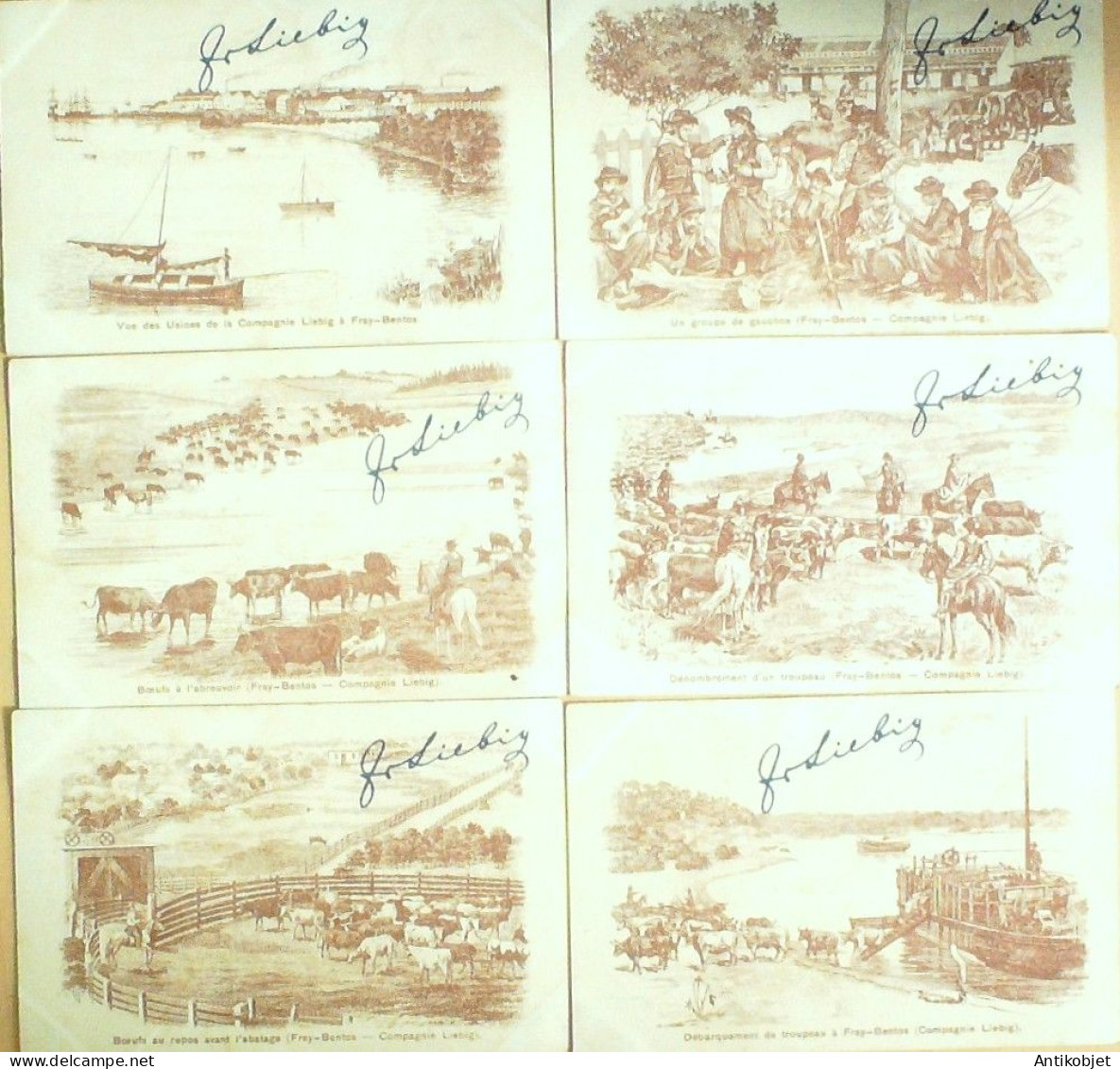 6 Vignettes publicitaires dite chromo des potages Liebig au format 107 x 70 periode de 1893 a 1943 Serie complete