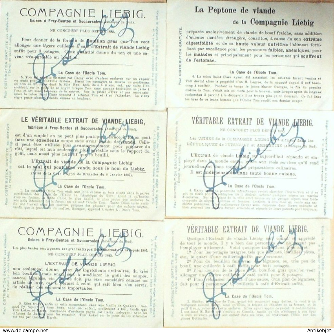 6 Vignettes publicitaires dite chromo des potages Liebig au format 107 x 70 periode de 1893 a 1943 Serie complete