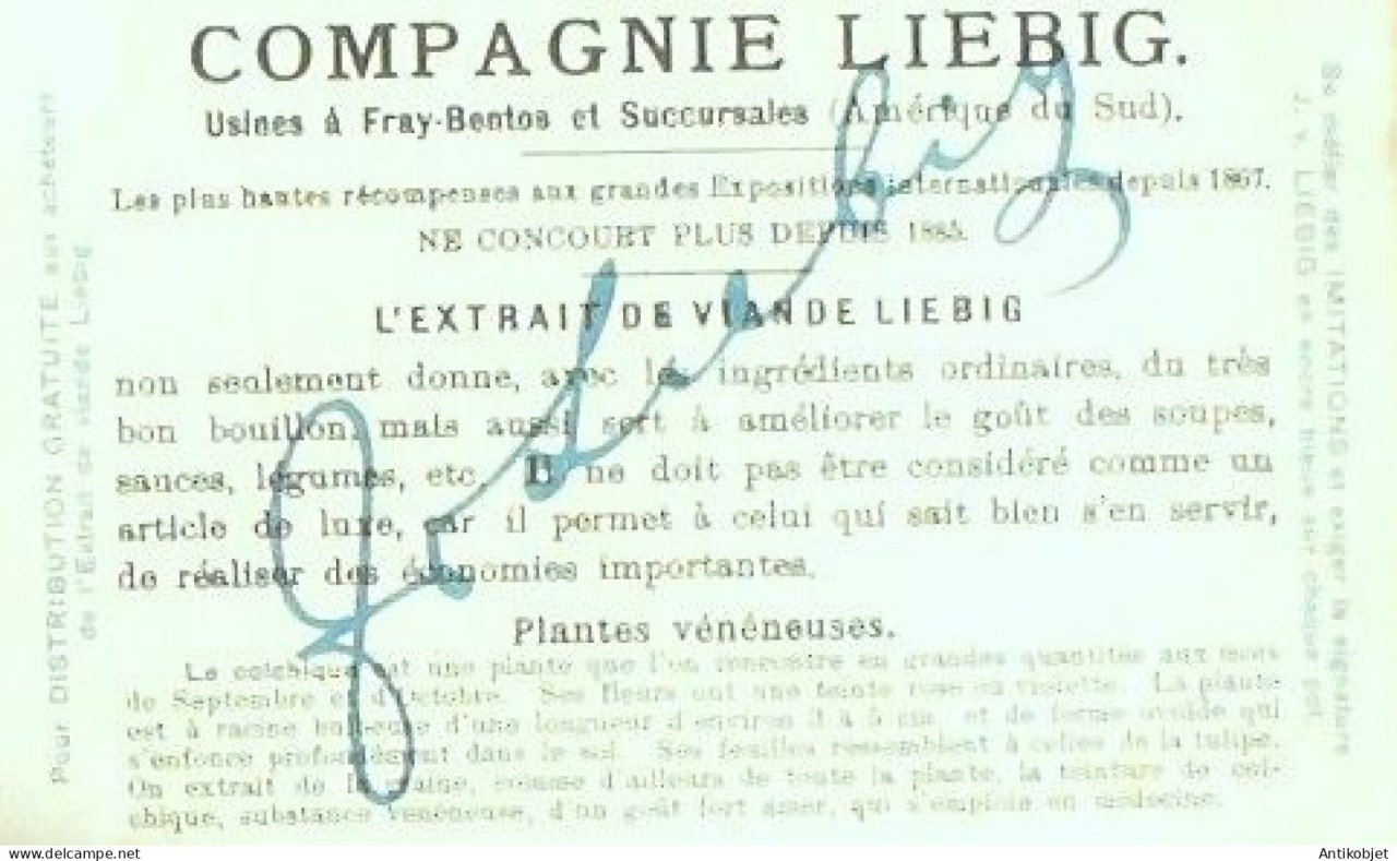 Vignette publicitaire dite chromo des potages Liebig au format 107 x 70 periode de 1893 a 1943