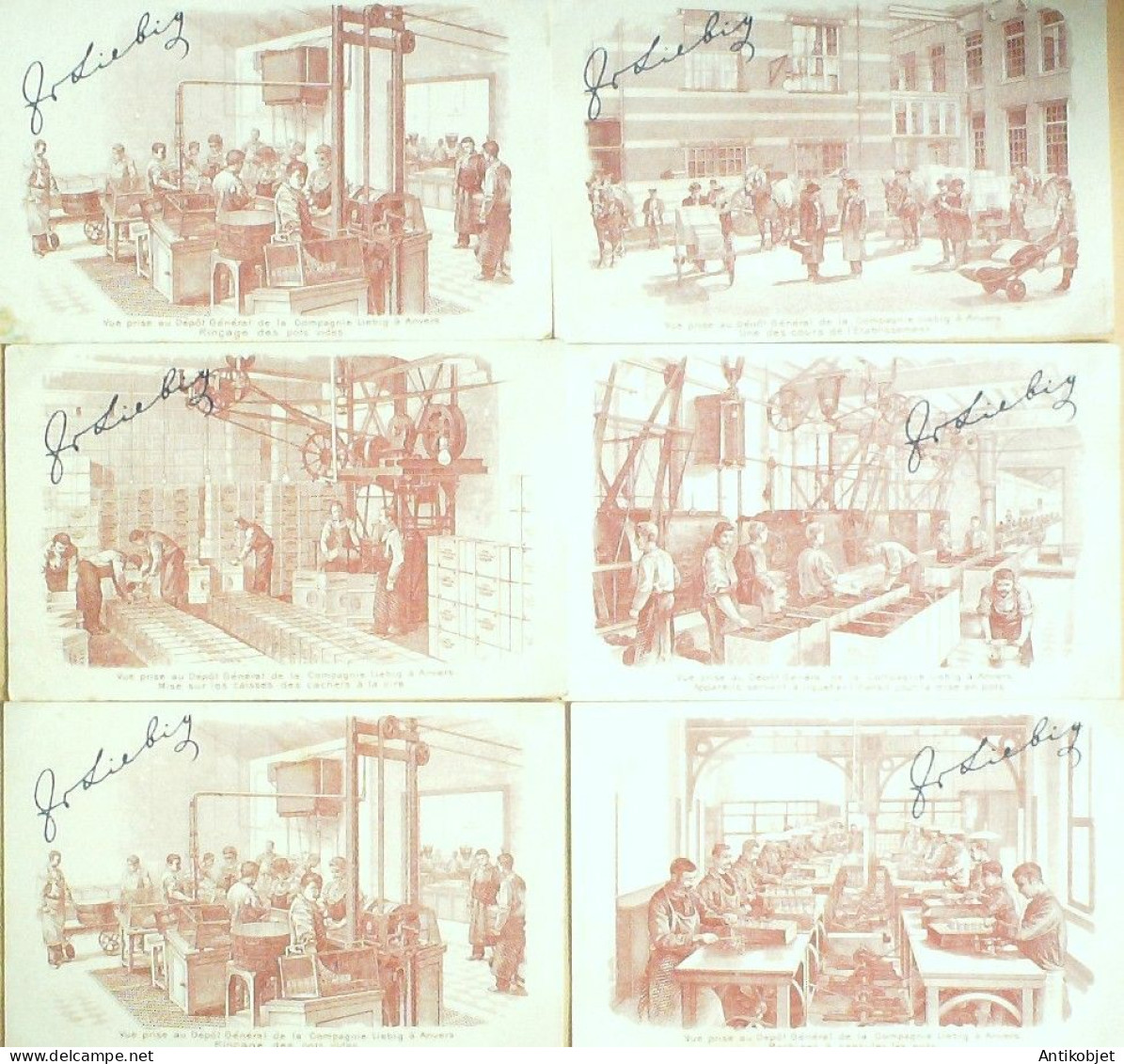 6 Vignettes publicitaires dite chromo des potages Liebig au format 107 x 70 periode de 1893 a 1943 Serie complete