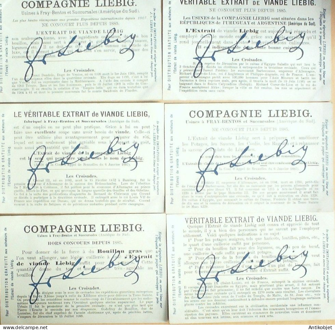 6 Vignettes publicitaires dite chromo des potages Liebig au format 107 x 70 periode de 1893 a 1943 Serie complete