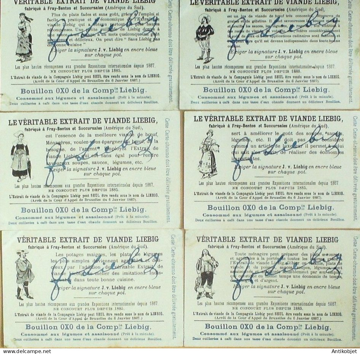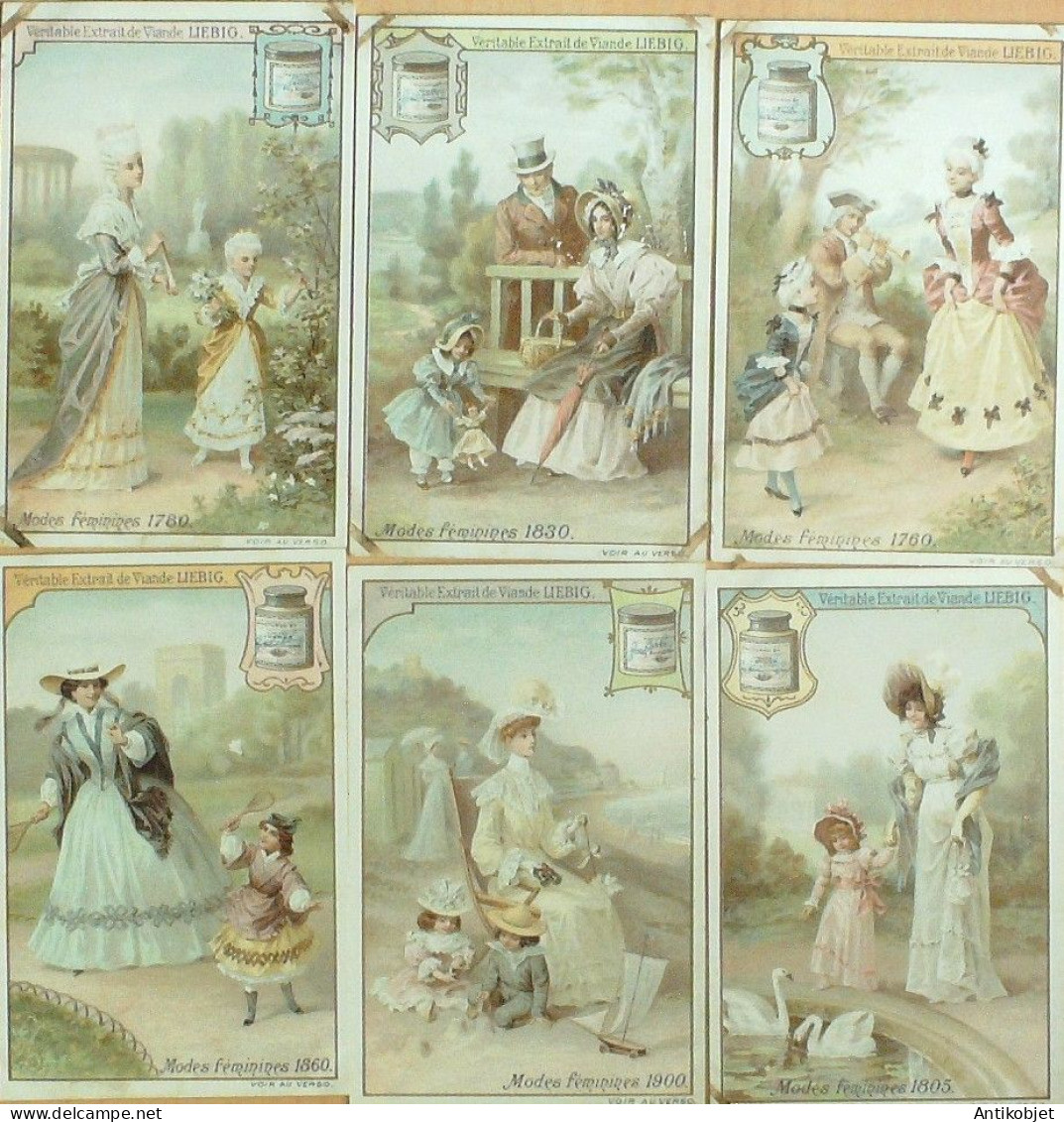 6 Vignettes publicitaires dite chromo des potages Liebig au format 107 x 70 periode de 1893 a 1943 Serie complete