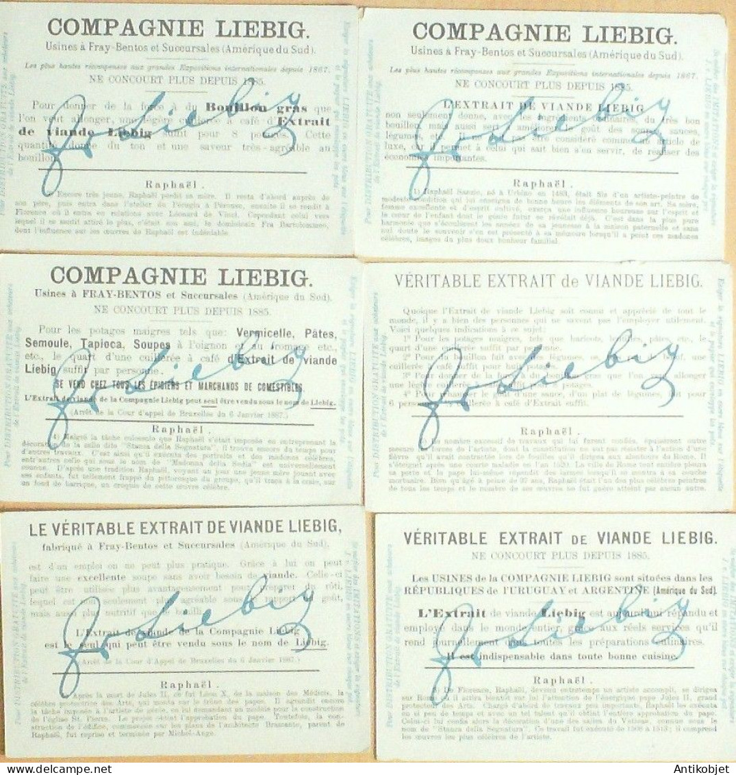 6 Vignettes publicitaires dite chromo des potages Liebig au format 107 x 70 periode de 1893 a 1943 Serie complete