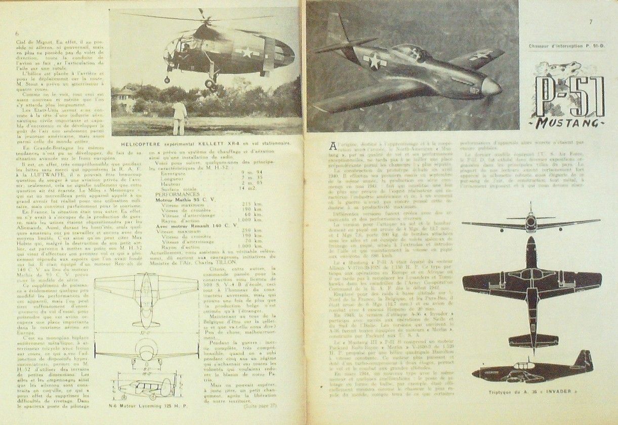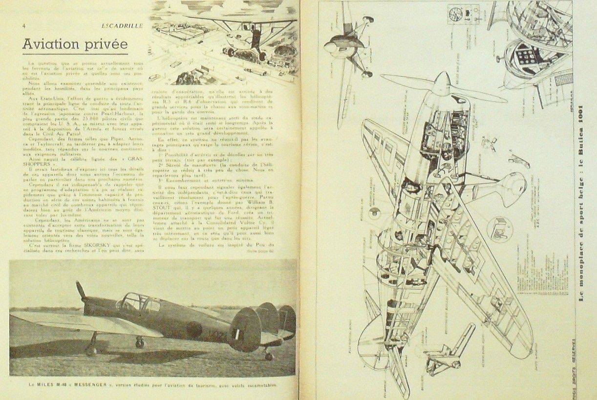 Revue mensuelle belge d'avions illustré de l'aéronautique mondiale en 30 pages . Sommaire : Aviation privée escadrille, plan monoplace de sport belge Butica 1001, le P-51 Mustang, hélicoptère Kellett XR 8, plan d'une maquette volante, North American PS1D, paquebots aériens made in Usa, Lockheed Constellation, Douglas C74 Globemaster, plan Gaumman F6F-3 Hellcat, le Convair de transport de 160 tonnes, motomodèles, maquettes d'avions, le Havilland Vampire