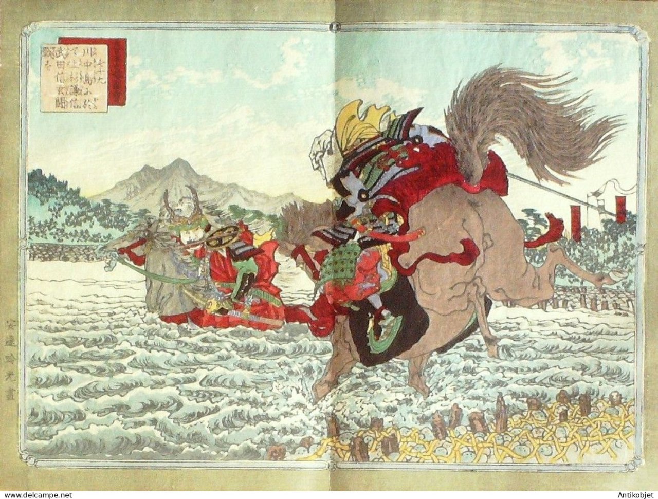 Gravure Japonaise sur Bois Ginko Adachi 1853-1908 Samourais rivaux