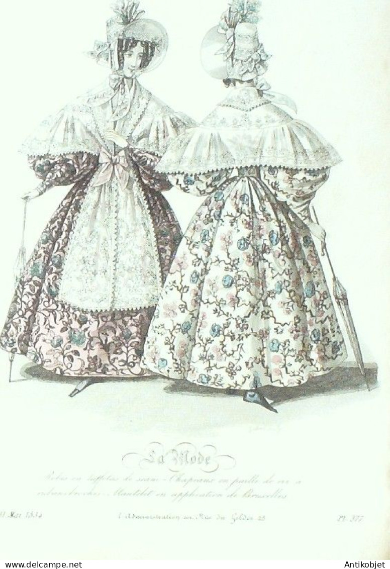 Gravure La mode 1834 # 377 (aquarelle old Fashion plate)