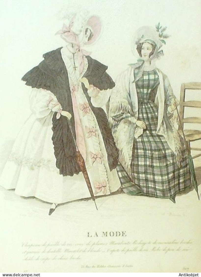 Gravure La mode 1836 # 507 (aquarelle old Fashion plate) Amazones