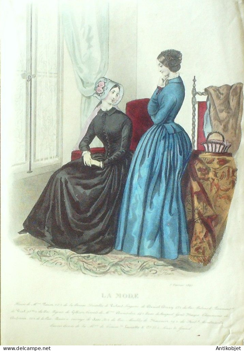 Gravure La mode 1847 # 3 (aquarelle old Fashion plate)