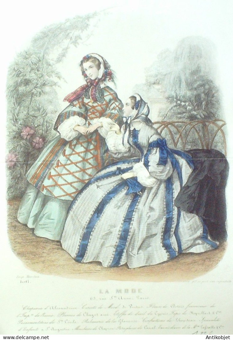 Gravure La mode 1856 # 1 (aquarelle old Fashion plate)