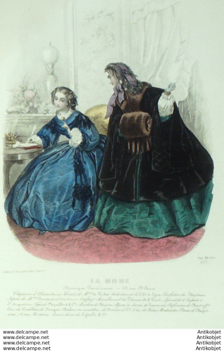 Gravure La mode 1858 # 5 (aquarelle old Fashion plate)