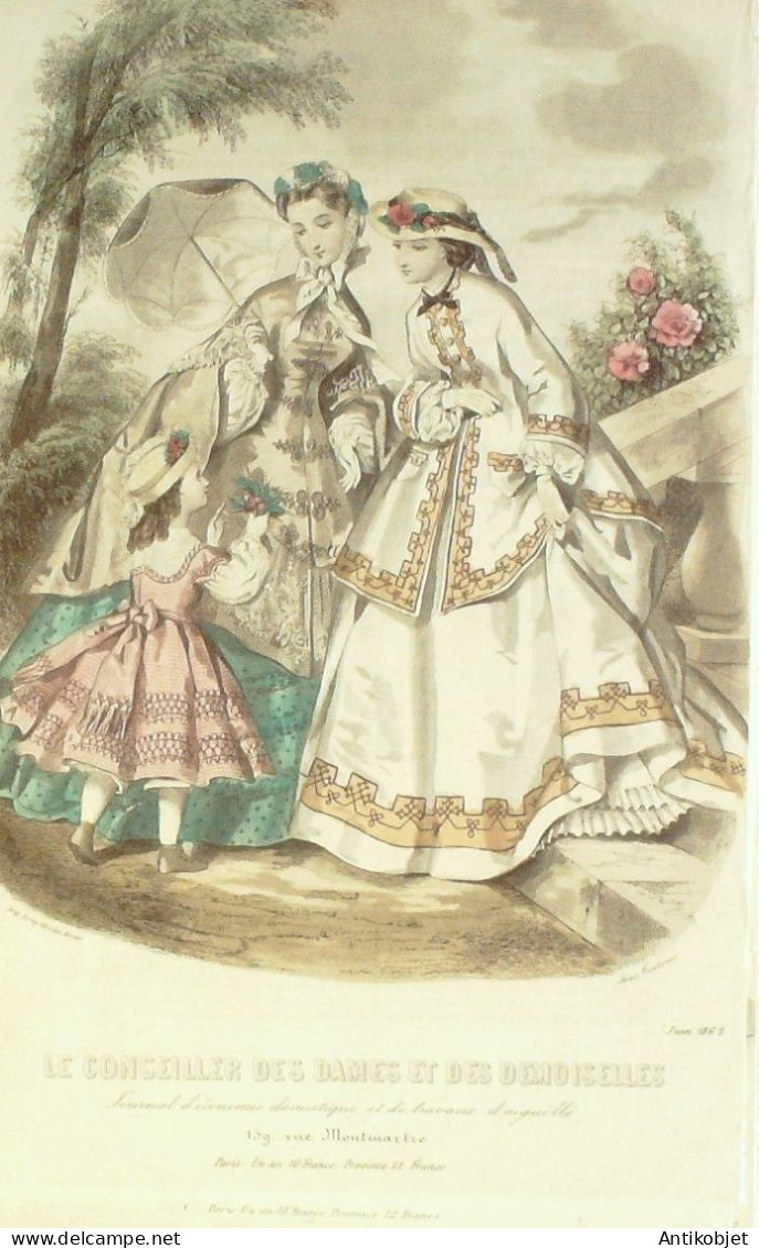 Gravure Mode Conseiller des Dames 1862 # 6 (aquarellee Old Fashion plate)