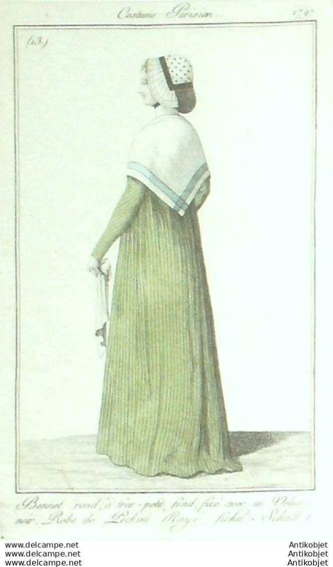 Gravure Mode Costume Parisien 1797 an 5 # 13 (eau forte old Fashion plate