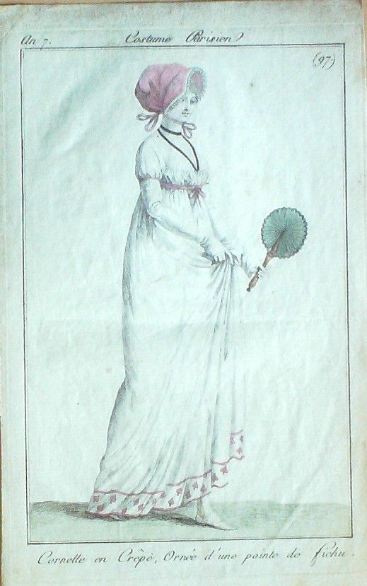 Gravure Mode Costume Parisien 1798 an 7 # 97 (eau forte old Fashion plate