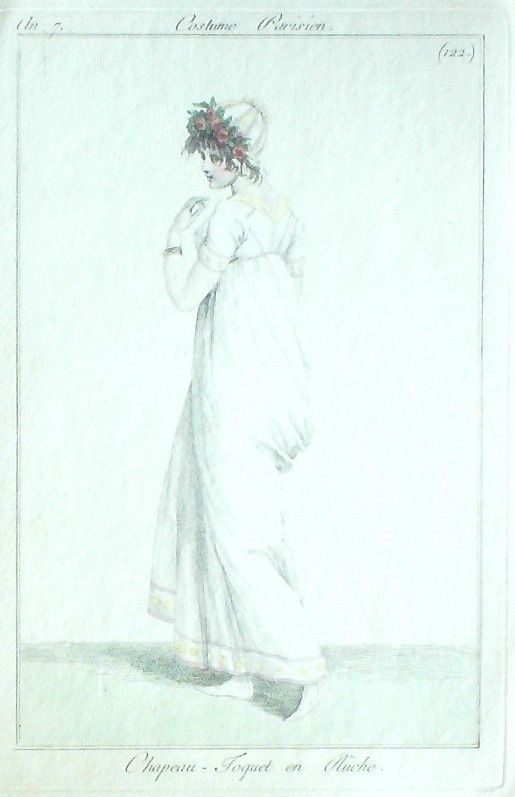 Gravure Mode Costume Parisien 1799 an 7 # 122 (eau forte old Fashion plate