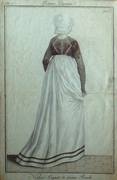 Gravure Mode Costume Parisien 1799 an 7 # 123 (eau forte old Fashion plate
