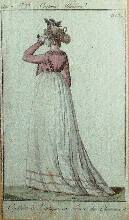 Gravure Mode Costume Parisien 1799 an 7 # 125 (eau forte old Fashion plate
