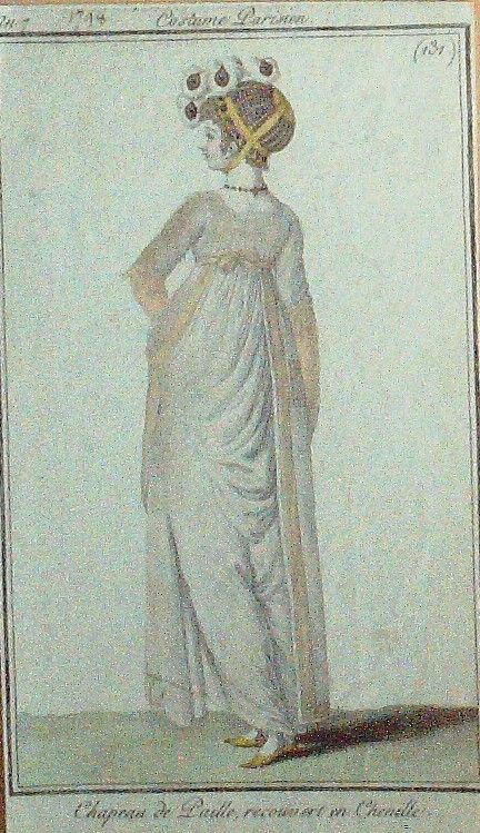 Gravure Mode Costume Parisien 1799 an 7 # 131 (eau forte old Fashion plate