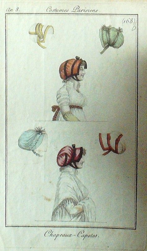 Gravure Mode Costume Parisien 1799 an 8 # 168b (eau forte old Fashion plate