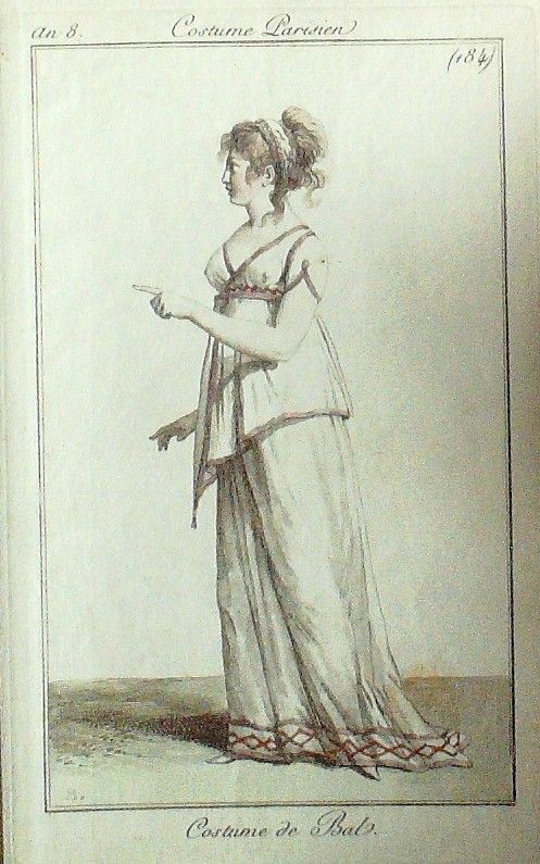 Gravure Mode Costume Parisien 1799 an 8 # 184 (eau forte old Fashion plate