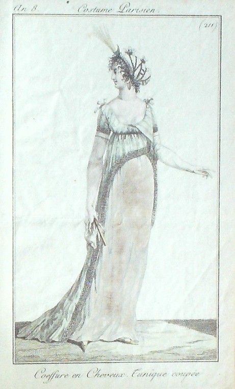 Gravure Mode Costume Parisien 1800 an 8 # 211 (eau forte old Fashion plate