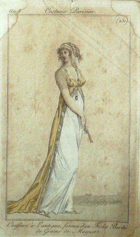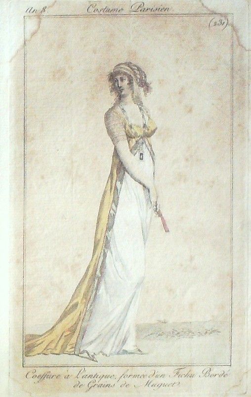 Gravure Mode Costume Parisien 1800 an 8 # 231 (eau forte old Fashion plate