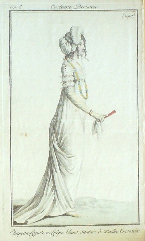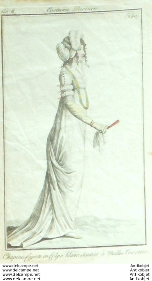 Gravure Mode Costume Parisien 1800 an 8 # 240 (eau forte old Fashion plate