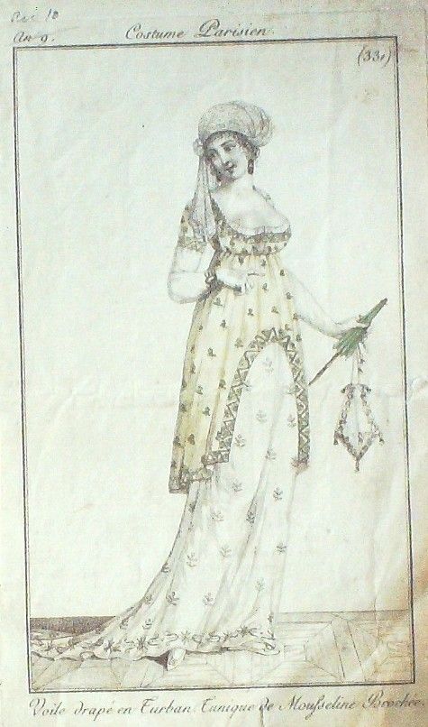 Gravure Mode Costume Parisien 1801 an 10 # 331 (eau forte old Fashion plate