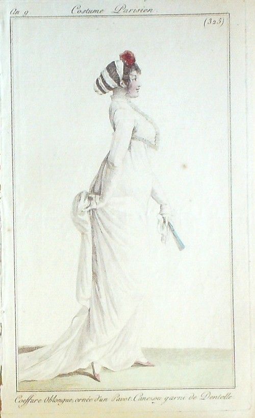 Gravure Mode Costume Parisien 1801 an 9 # 325 (eau forte old Fashion plate
